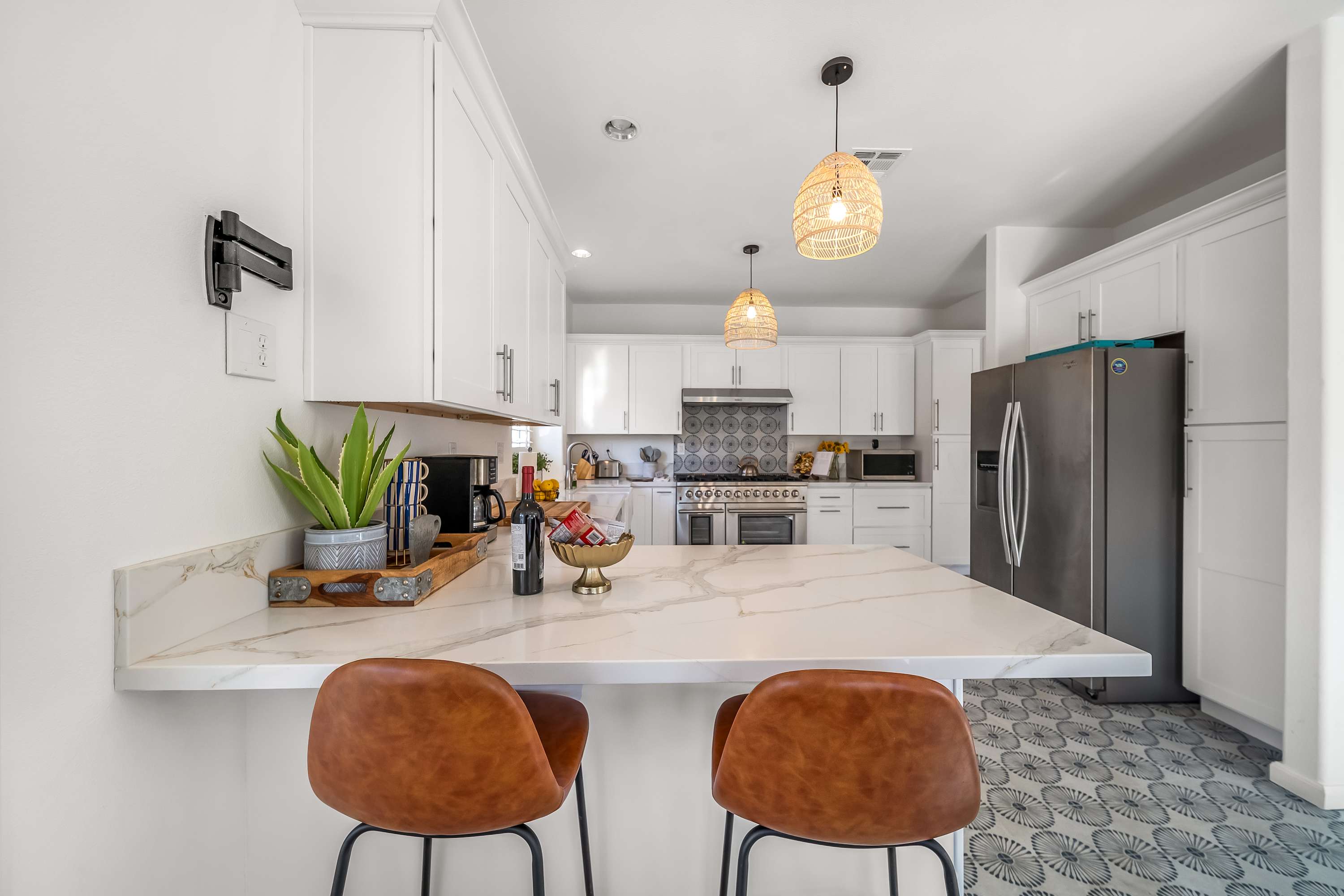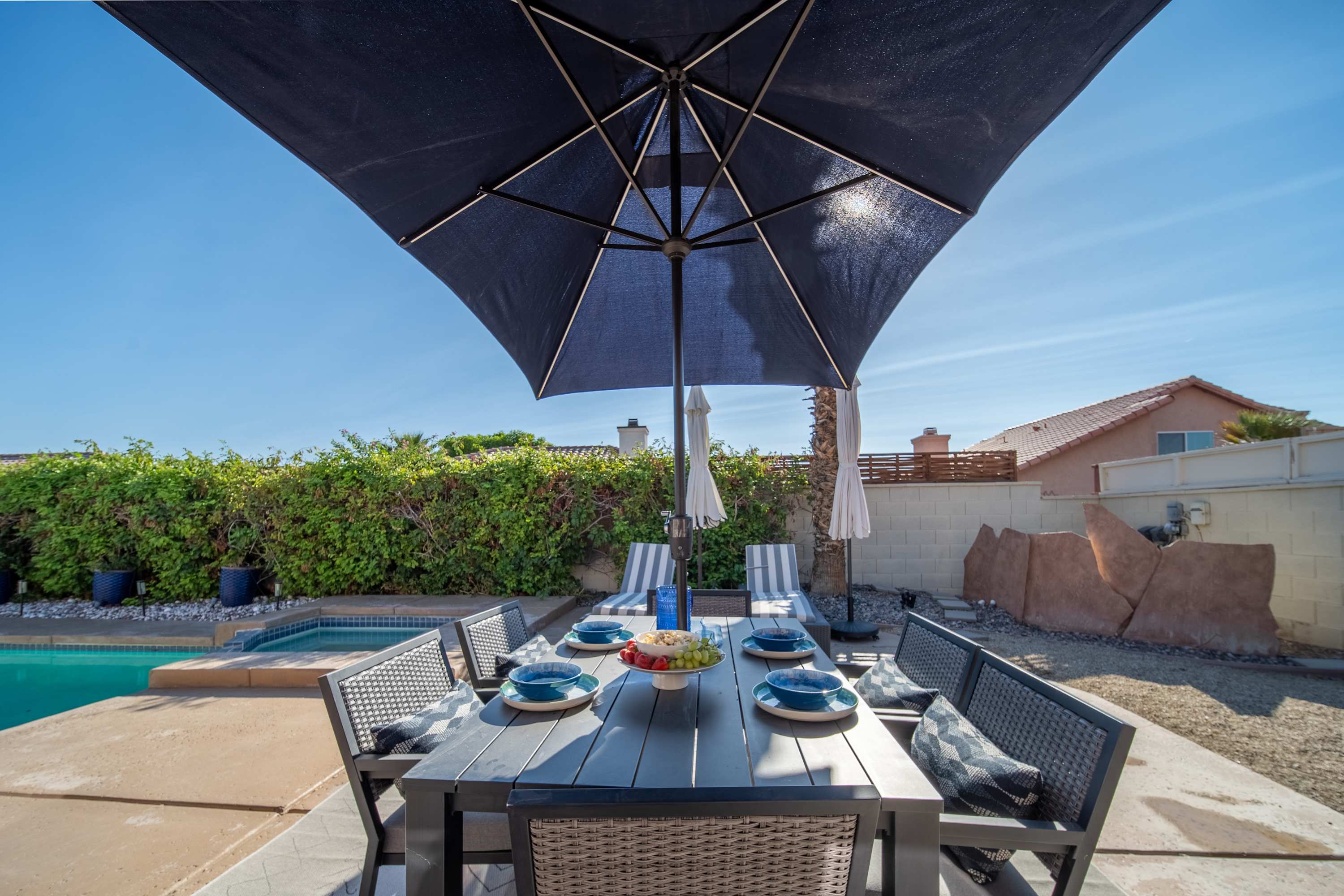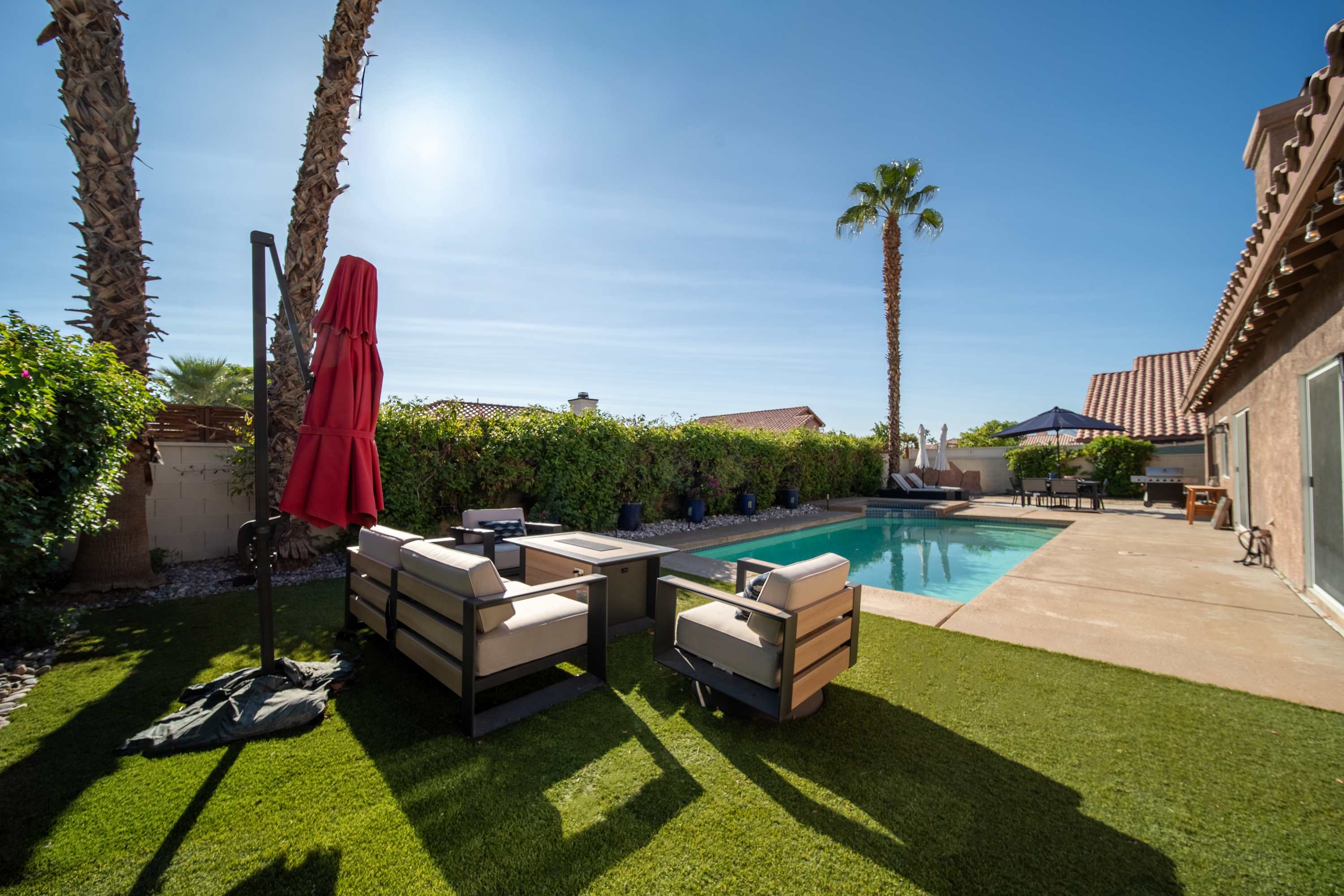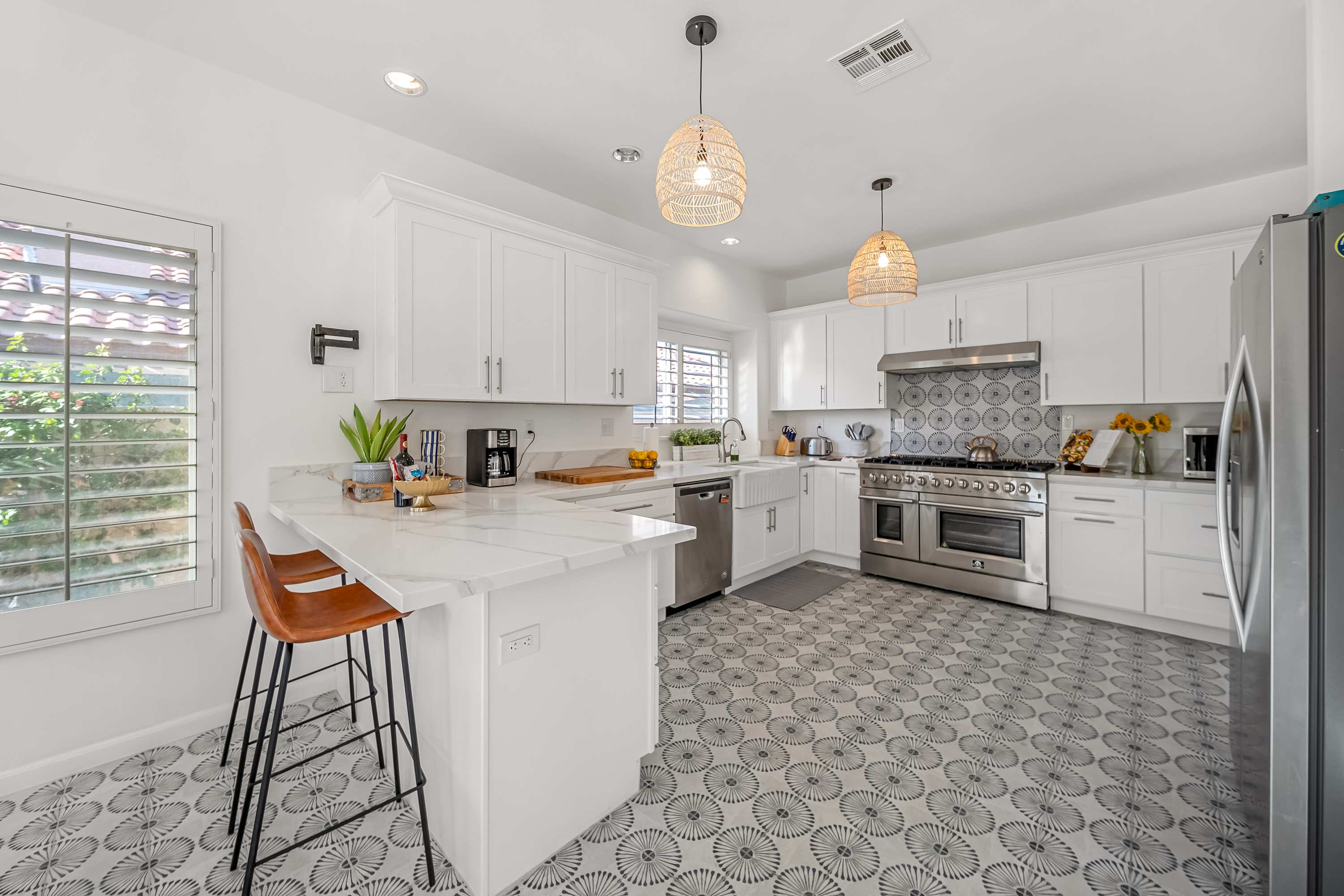 Welcome to Casa Milan Oasis, a beautifully remodeled single-level home in the desirable Bella Vista community of La Quinta. Featuring 3 bedrooms, 2 bathrooms, and over 2,000 sq. ft. of living space, this residence blends modern upgrades with classic desert charm. Enjoy a private pool and spa with mountain views, a chef’s kitchen with quartz counters and island, and spacious living areas designed for comfort. Located just minutes from Indian Wells Golf Course and Drive, the home offers convenient access to world-class golf, dining, and shopping. Security Deposit: A refundable security deposit is required and will be collected prior to your stay. Full details provided upon booking. For long-term rentals, a California lease must be signed, and each rental includes utility caps for electricity, water, and gas. Pets: Pets are subject to approval. Pet cleaning fees apply, no pets greater than 25lbs and no cats allowed.