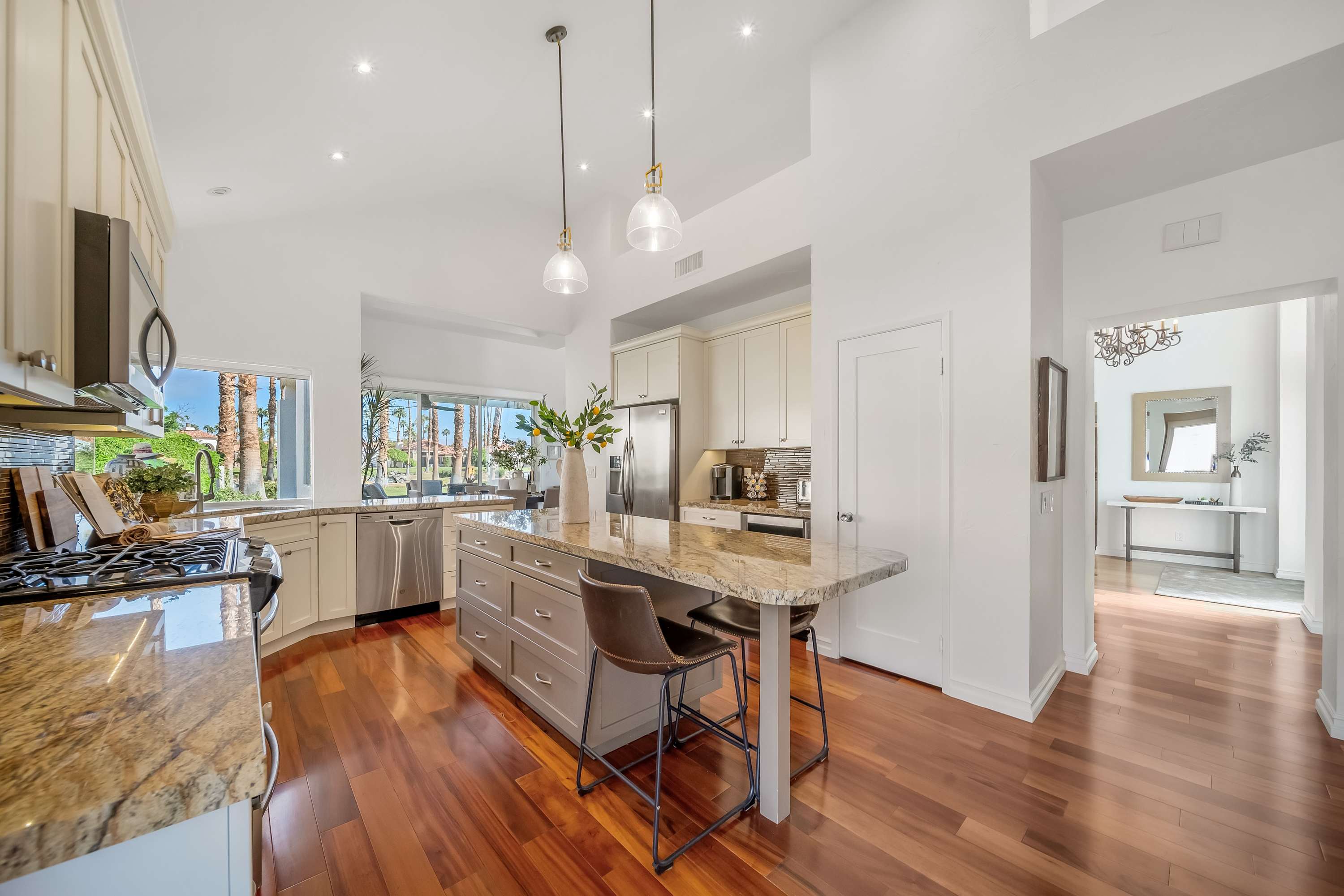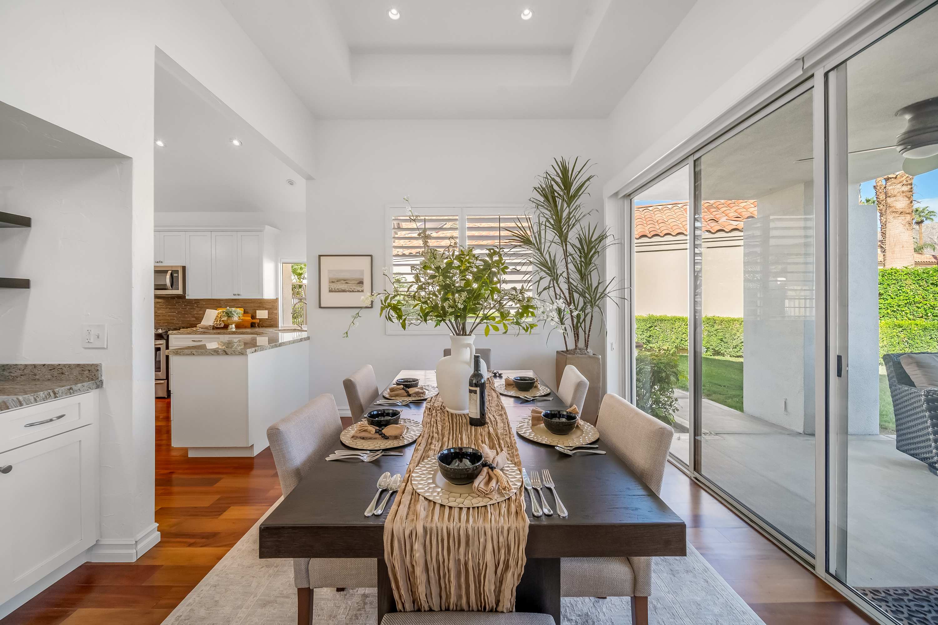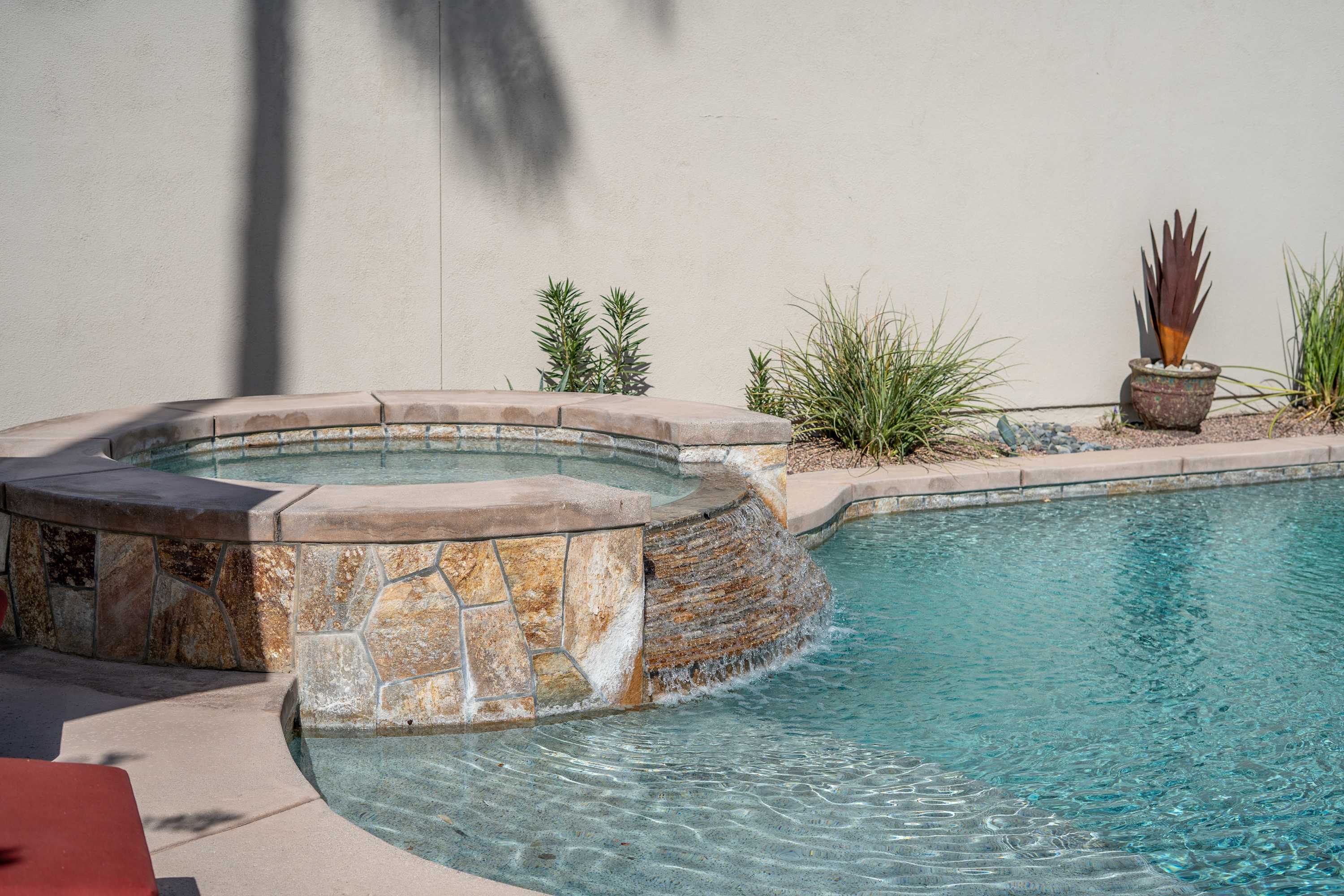 Casa Pacífico offers a seamless mix of sophistication and comfort. The open-concept living area features soaring ceilings, abundant natural light, and elegant furnishings that create an inviting atmosphere. The gourmet kitchen is equipped with premium appliances, custom cabinetry, and a large island perfect for gathering and entertaining. The primary suite features a spa-inspired bathroom and generous walk-in closet. Two guest suites are thoughtfully positioned for privacy, each with en-suite baths. Step outside to your private oasis — a sparkling pool and spa, built-in BBQ, and lounge area overlooking the serene lake and mountains. Whether you’re hosting dinner under the desert sky or unwinding with morning coffee by the water, Casa Pacífico embodies the best of luxury desert living.