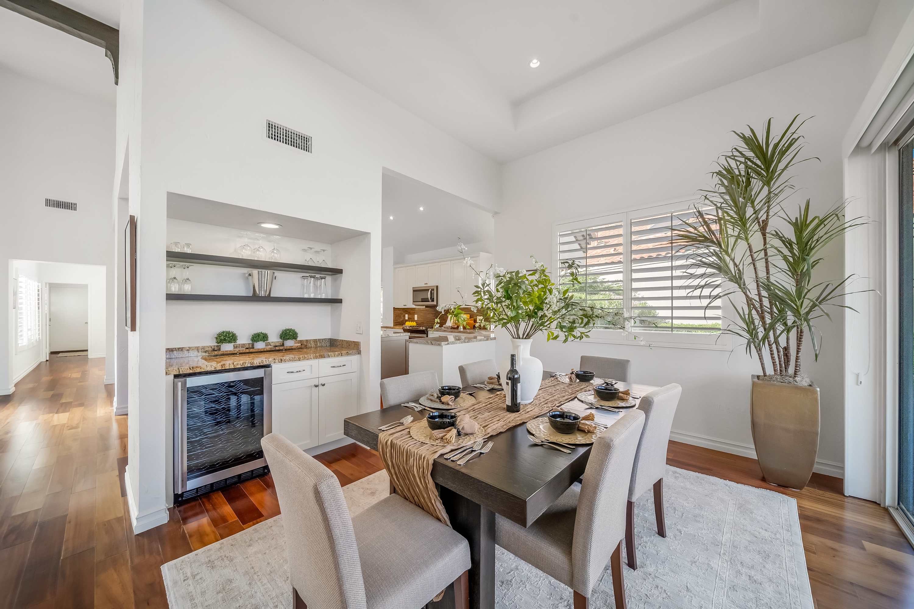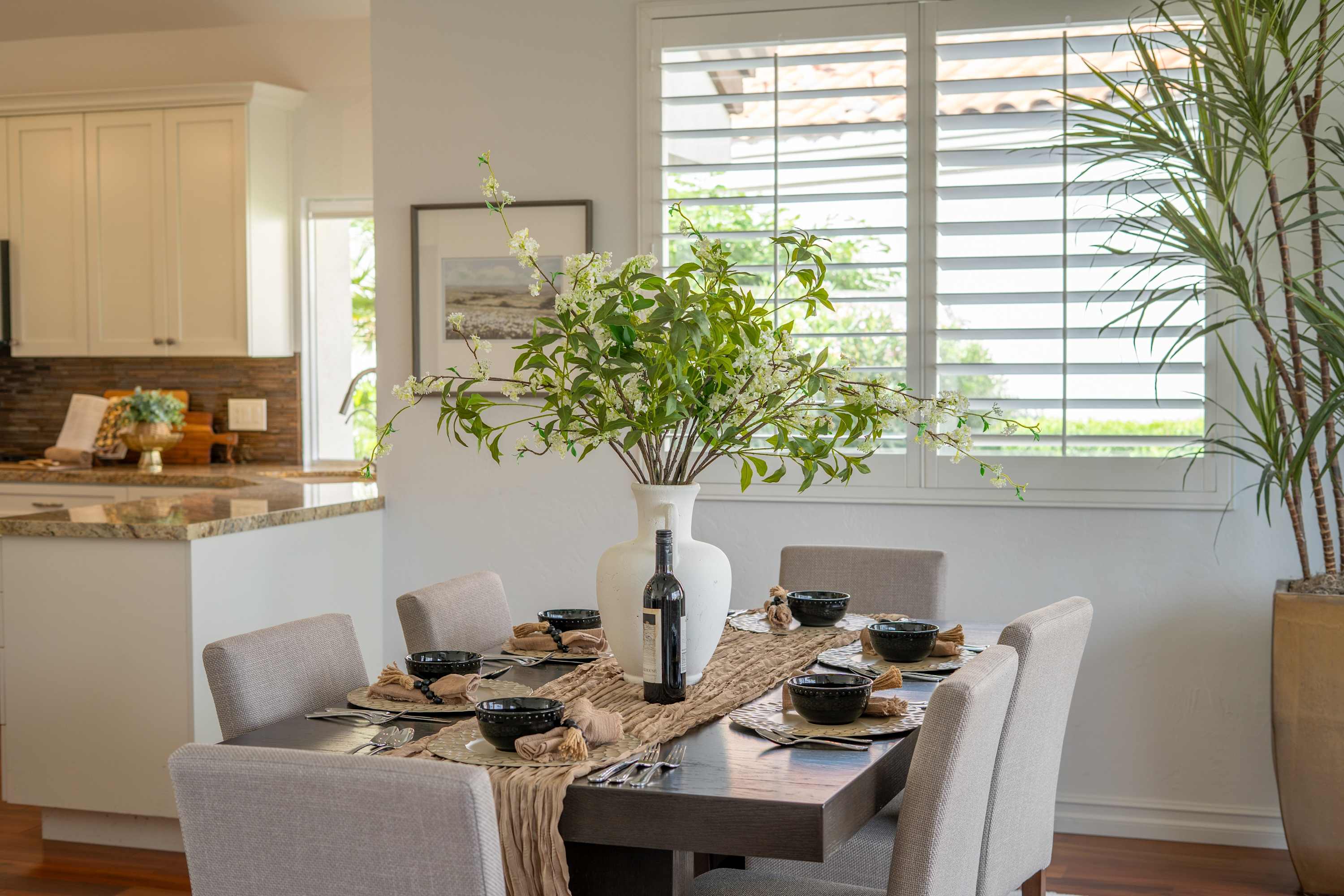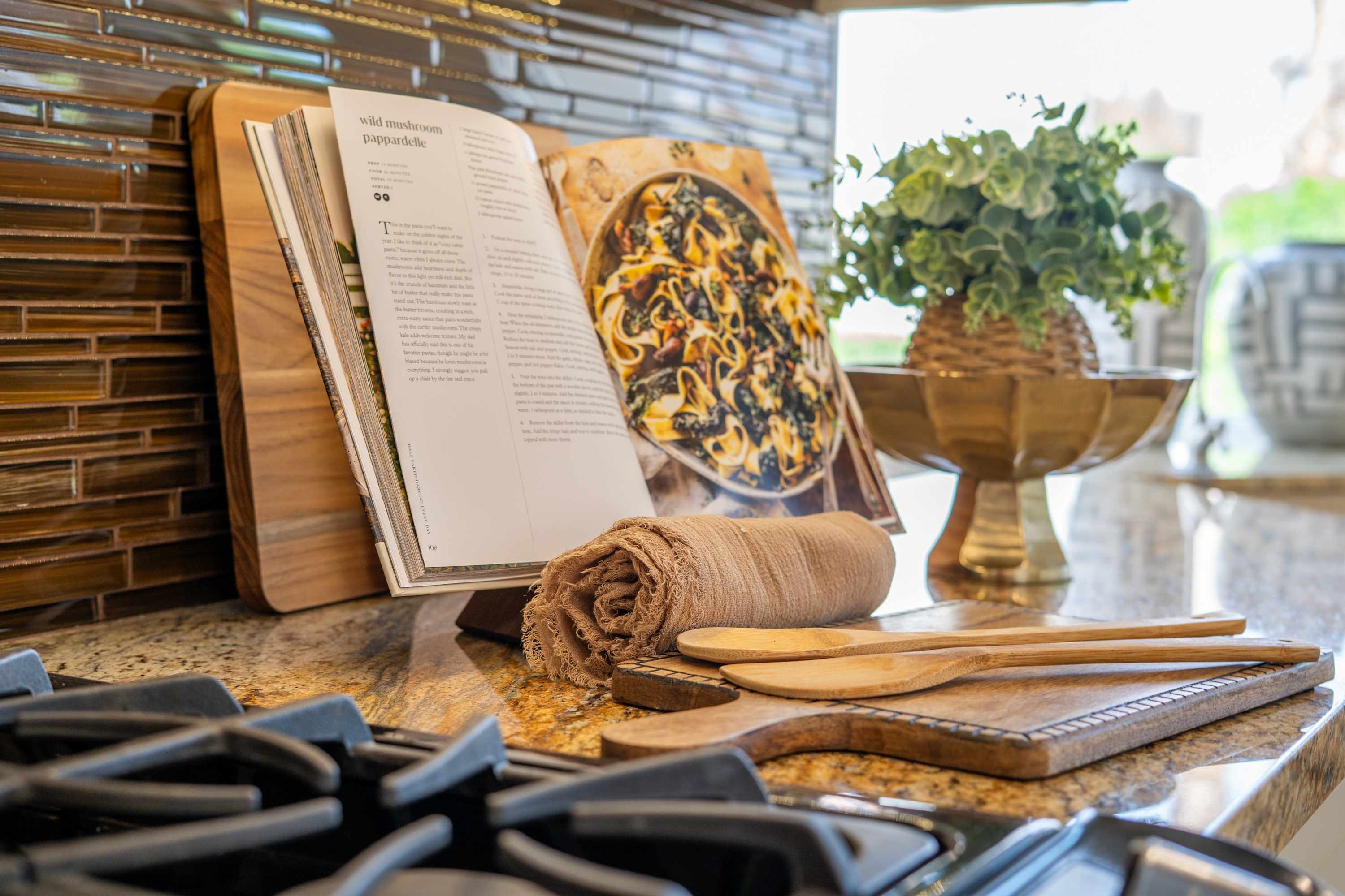 Casa Pacífico offers a seamless mix of sophistication and comfort. The open-concept living area features soaring ceilings, abundant natural light, and elegant furnishings that create an inviting atmosphere. The gourmet kitchen is equipped with premium appliances, custom cabinetry, and a large island perfect for gathering and entertaining. The primary suite features a spa-inspired bathroom and generous walk-in closet. Two guest suites are thoughtfully positioned for privacy, each with en-suite baths. Step outside to your private oasis — a sparkling pool and spa, built-in BBQ, and lounge area overlooking the serene lake and mountains. Whether you’re hosting dinner under the desert sky or unwinding with morning coffee by the water, Casa Pacífico embodies the best of luxury desert living.