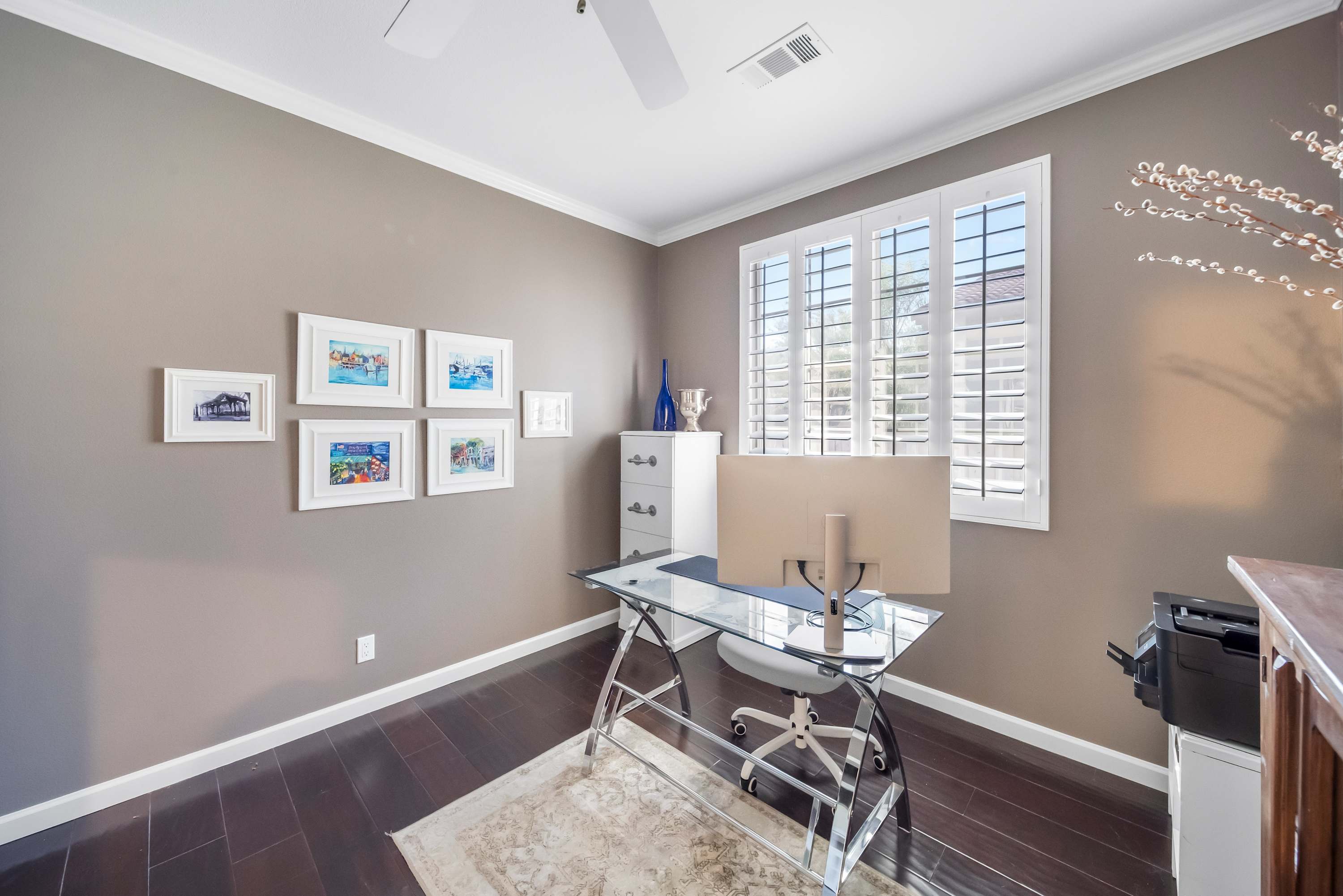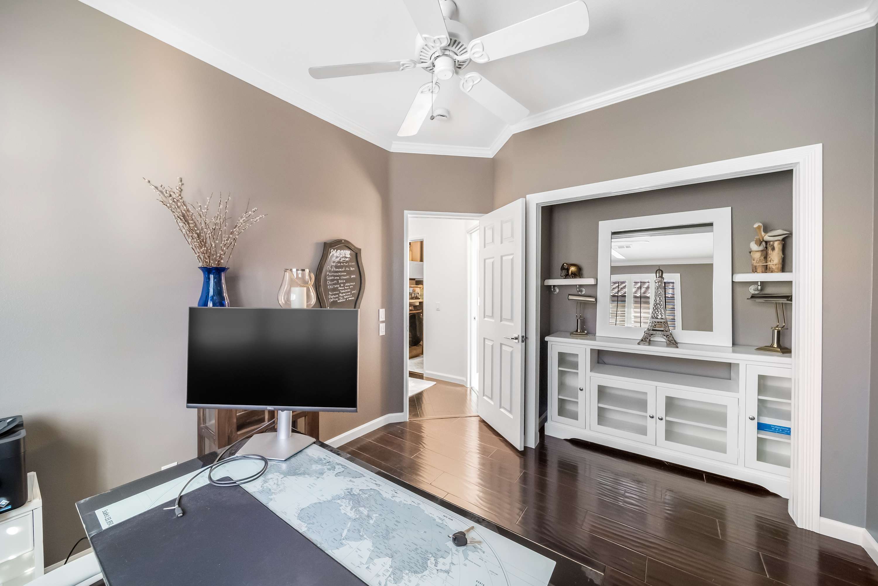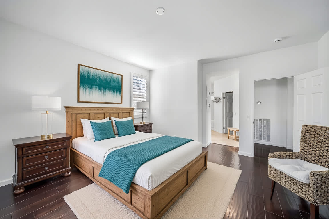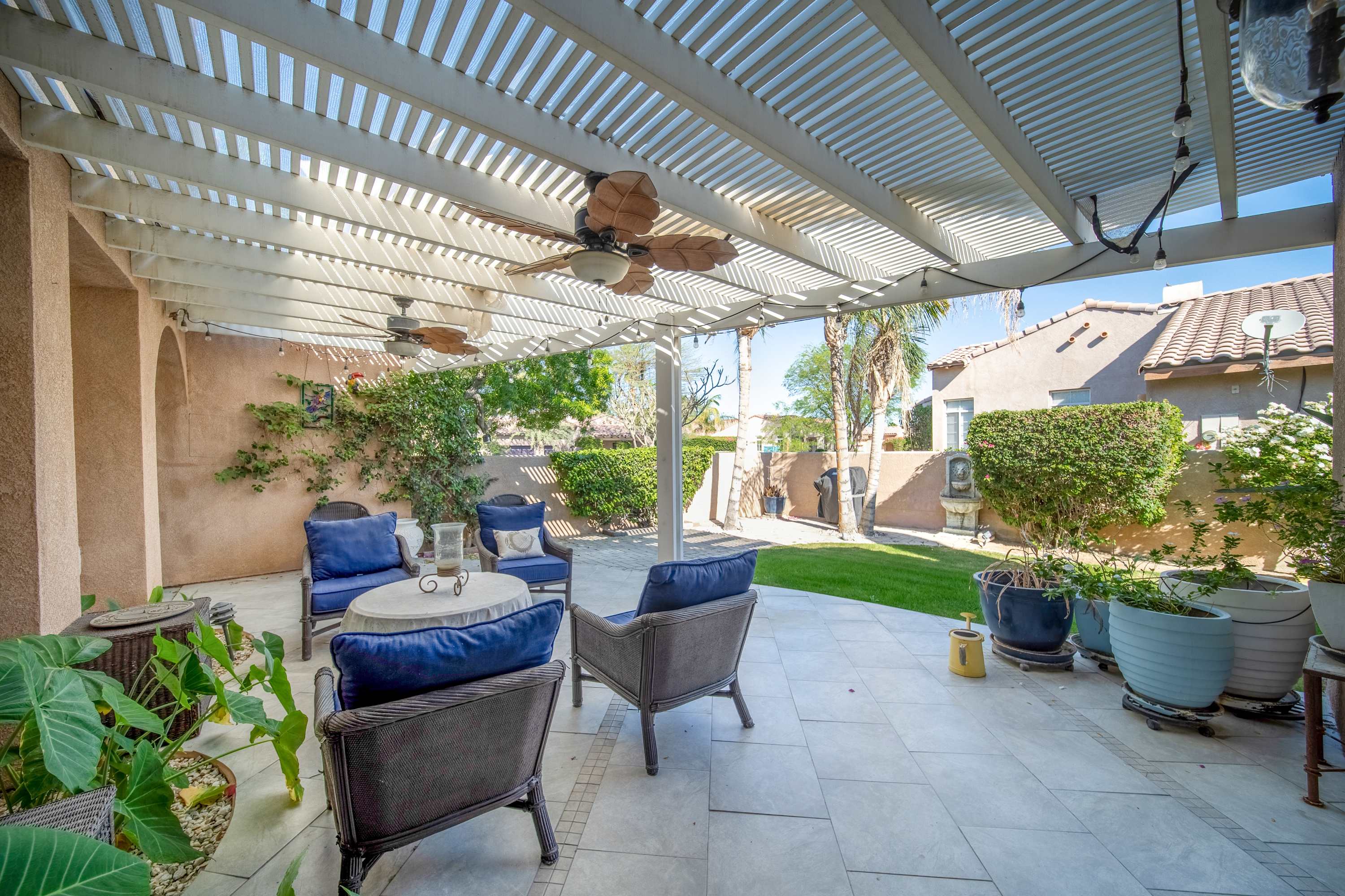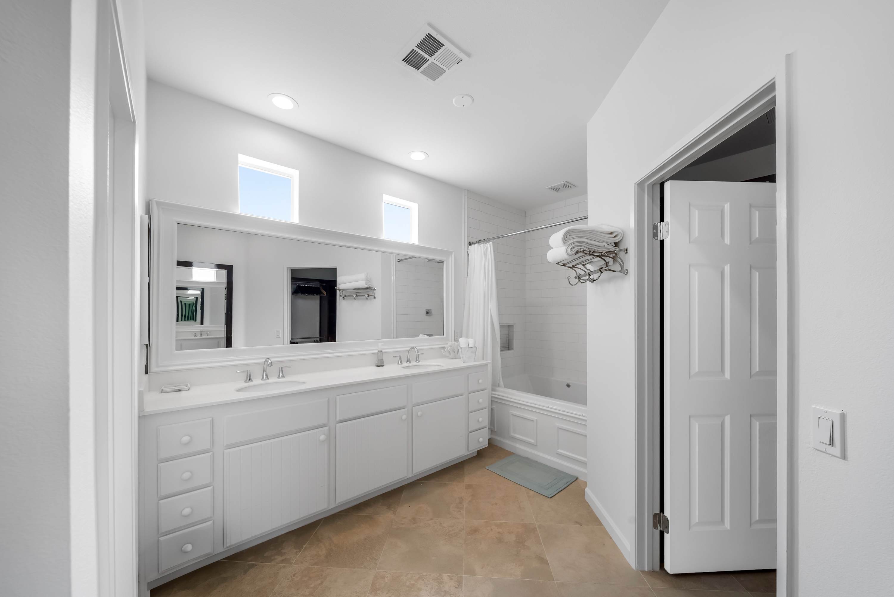 Casa Clara designed to feel open, clean, and easy to live in from the moment you walk in. The home features wide-plank wood-style flooring throughout the main living areas, giving it a modern, seamless look while also being easy to maintain for longer stays. Natural light fills the space during the day, and the layout flows effortlessly from the kitchen into the living areas. The kitchen is one of the highlights, with quartz countertops, white shaker cabinetry, and a large center island with seating. Whether you’re cooking, working from the island, or just having coffee in the morning, the space feels connected and functional. There are two separate living areas, including a main family room with a fireplace and a second sitting space near the entry. This makes it easy to spread out—whether you’re relaxing, working remotely, or hosting. Each bedroom is comfortably sized and finished with plantation shutters and ceiling fans, creating a calm and private space to unwind. The bathrooms have been updated with modern vanities and clean finishes, keeping everything simple and fresh. Step outside to a covered patio with ceiling fans and multiple seating areas. It’s a great spot to start the day or wind down in the evening, with a backyard that’s actually usable—not just for looks. Overall, the home is set up for real, everyday living—clean, functional, and thoughtfully updated without feeling overdone.